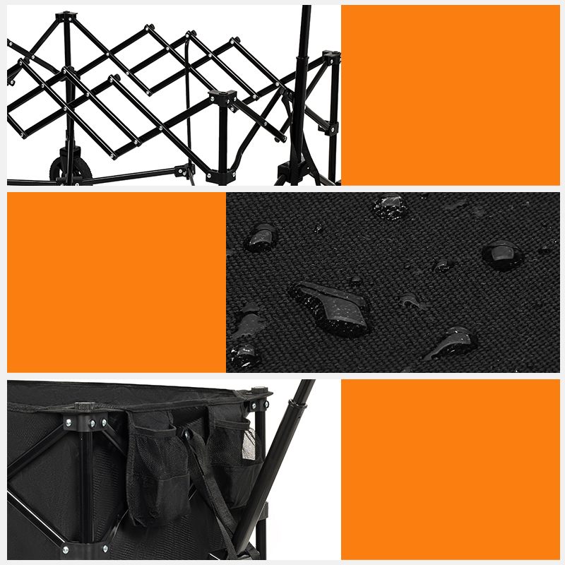 El carrito con ruedas de doble cojinete está diseñado para entusiastas de las actividades al aire libre que necesitan una solución duradera, de alta capacidad y versátil para transportar equipo. Con su estructura de acero reforzado, ruedas de doble cojinete y gran capacidad de almacenamiento, este carrito maneja cargas pesadas y una variedad de terrenos con facilidad. Su diseño plegable permite un almacenamiento compacto y una fácil portabilidad, lo que lo hace ideal para viajes de campamento, salidas a la playa, picnics o aventuras al aire libre. La combinación de construcción robusta, alta capacidad de carga y maniobrabilidad suave garantiza que su equipo se transporte de manera segura y eficiente.
